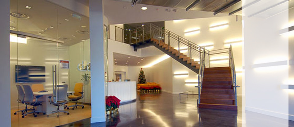 Conversion/adaptive reuse of an existing 3 story, 90,000 sf suburban office park building into a modern, technologically advanced global headquater for this digital sound technology company.