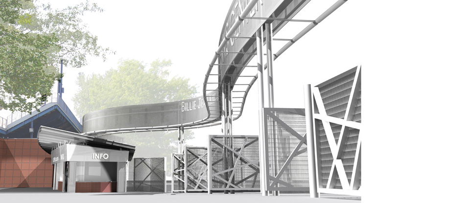 The project will create a new major entrance for this hallowed ground of American Tennis. The pavilion will include a state-of-the-art commercial kitchen / concession facility. The screened ribbon will be lit with color changing LED fixtures, as a contemporary but respectful modern addition to this historic park.