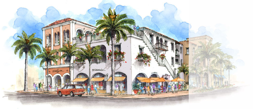 A commercial street level and two stories of apartments are located above below grade parking. A roof top bar will afford ocean views and a commanding view down PCH, the main street leading into Dana Point.