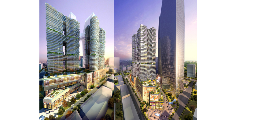 City Center and South China Gate, Kunming China - perspective views (2008; w/AEDAS)