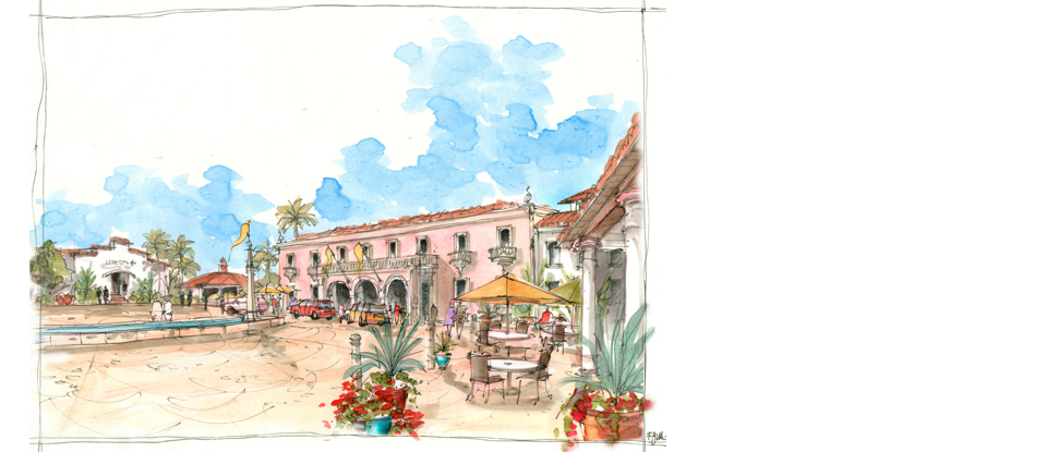 The project includes the revitalization and reuse of several historic buildings, a large new mixed use development with below grade parking, a commercial street level and two residential leves; and a grand beach hotel.