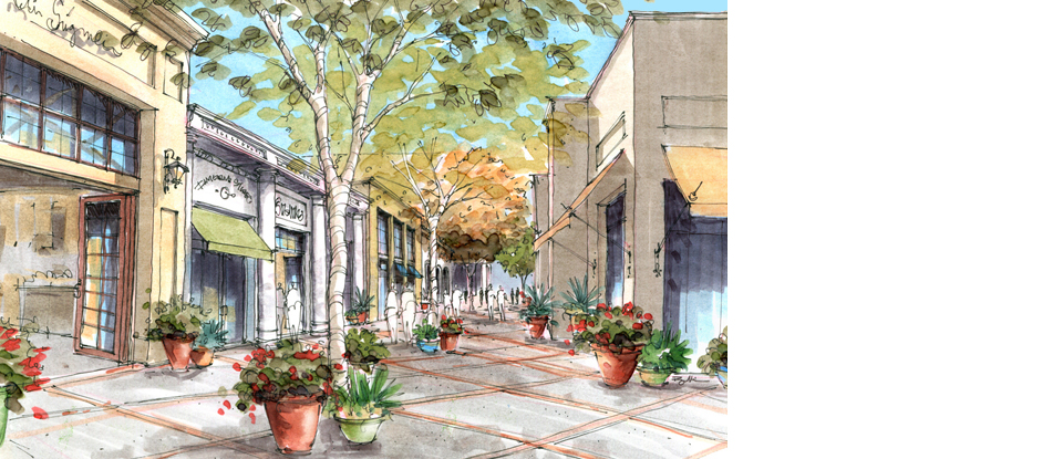 Similar to the process for La Cumbre Plaza in Santa Barbara (see also 'From Malls to Mainstreet' under the 'Media' section of this site) the design challenge was to create an attractive shopping environment that could compete with the downtown and would remain attractive for many years to come; and this needed to be accomplished without a big capital outlay on part of the landlord.