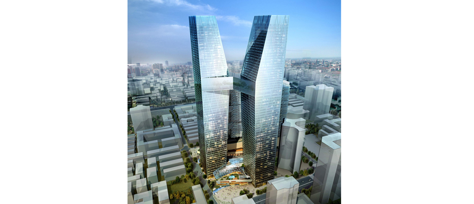 City Center and South China Gate, Kunming China - aerial perspective view (2008; w/AEDAS)